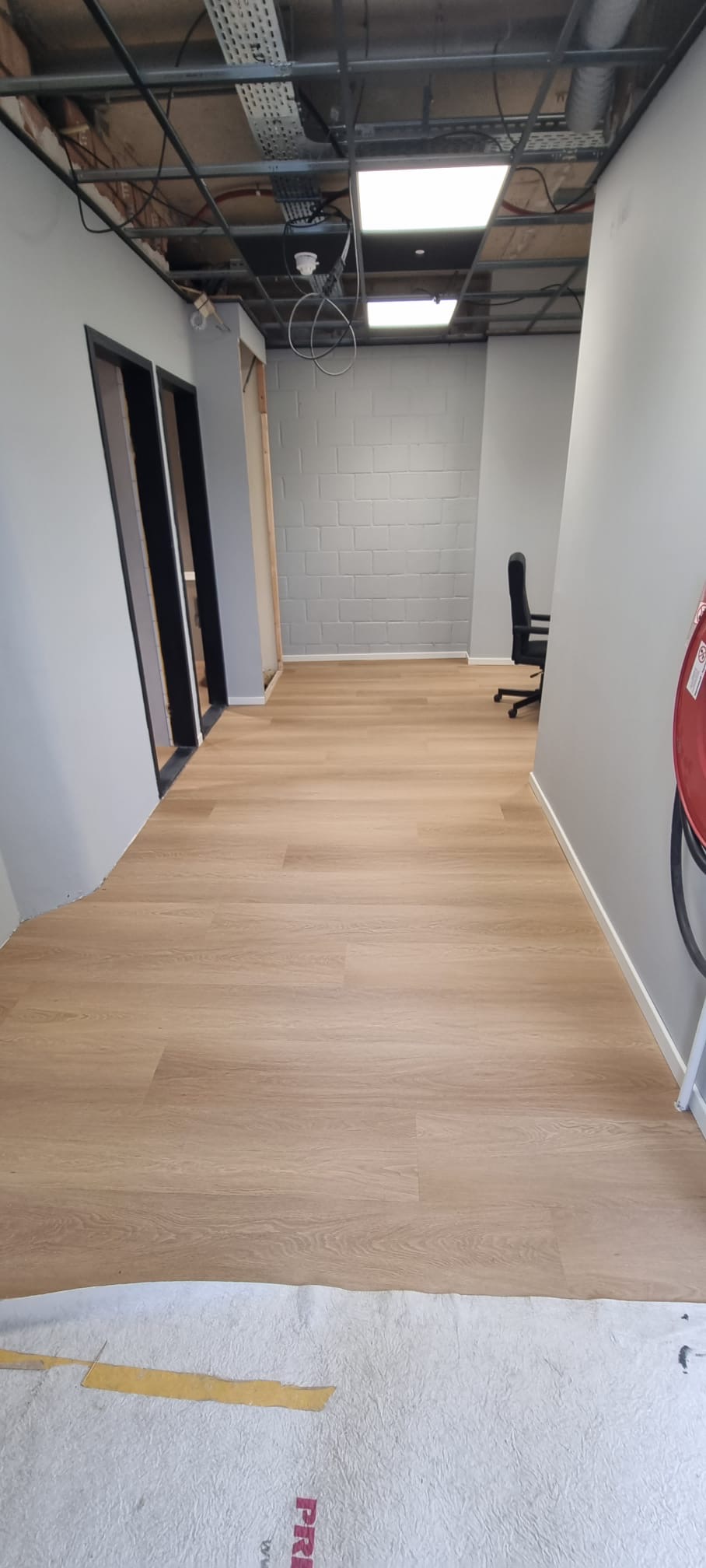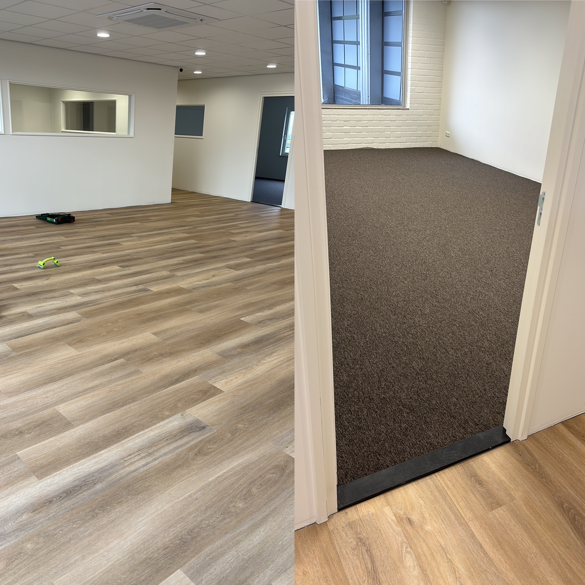 pvc vloer ‘planken’ entree en tapijttegels kantoorruimte