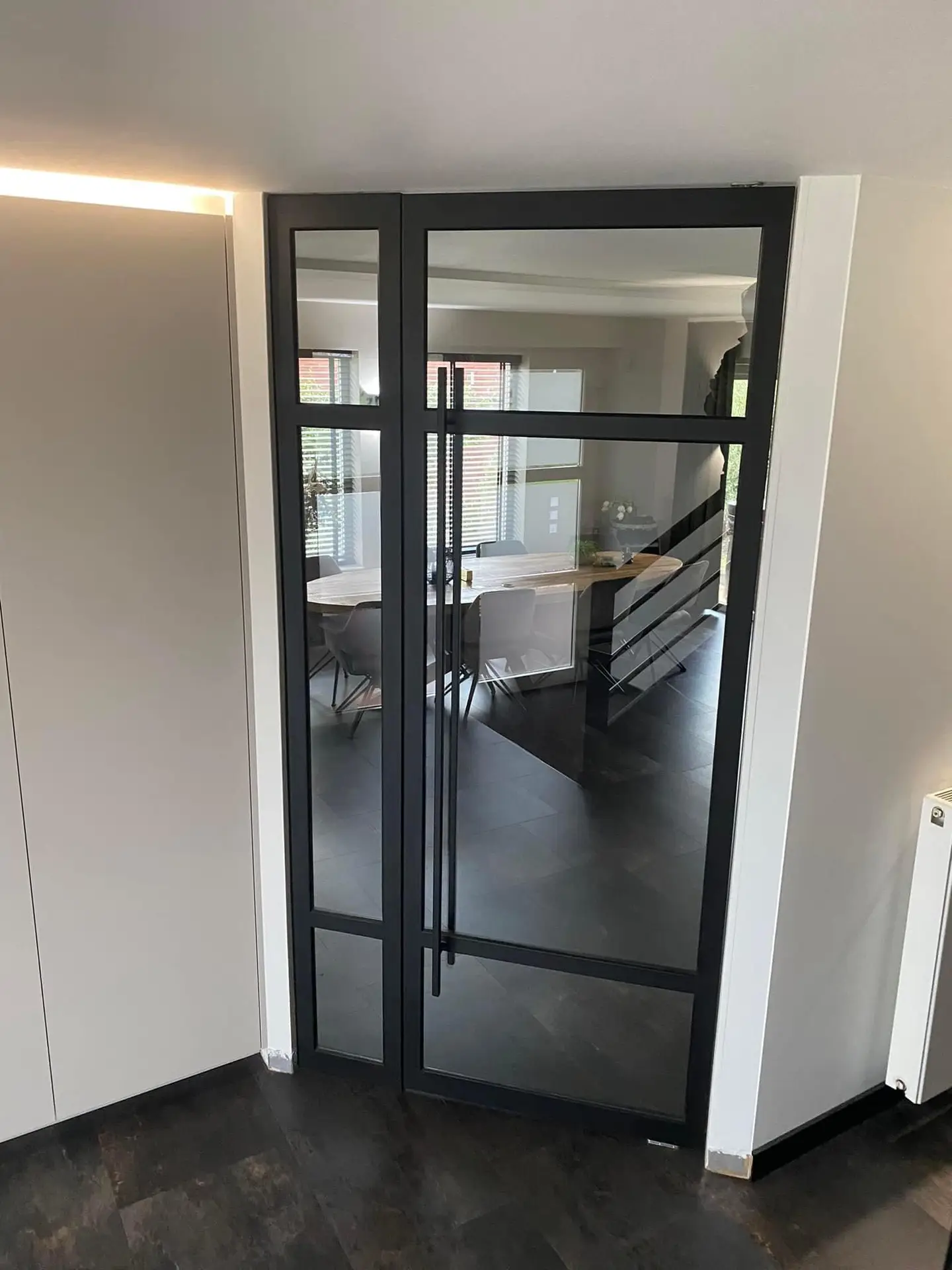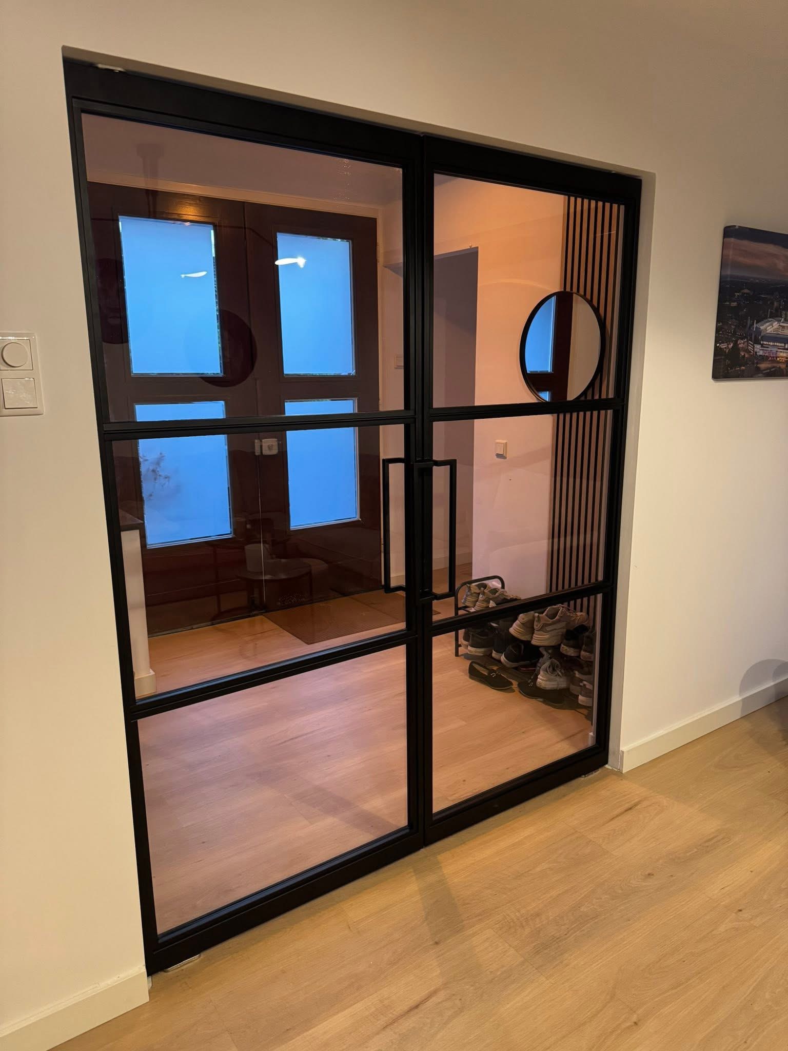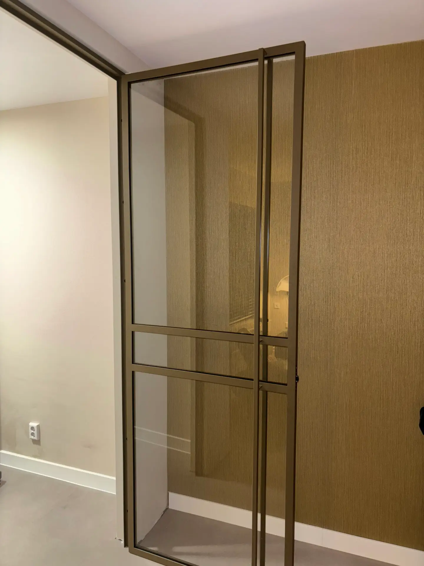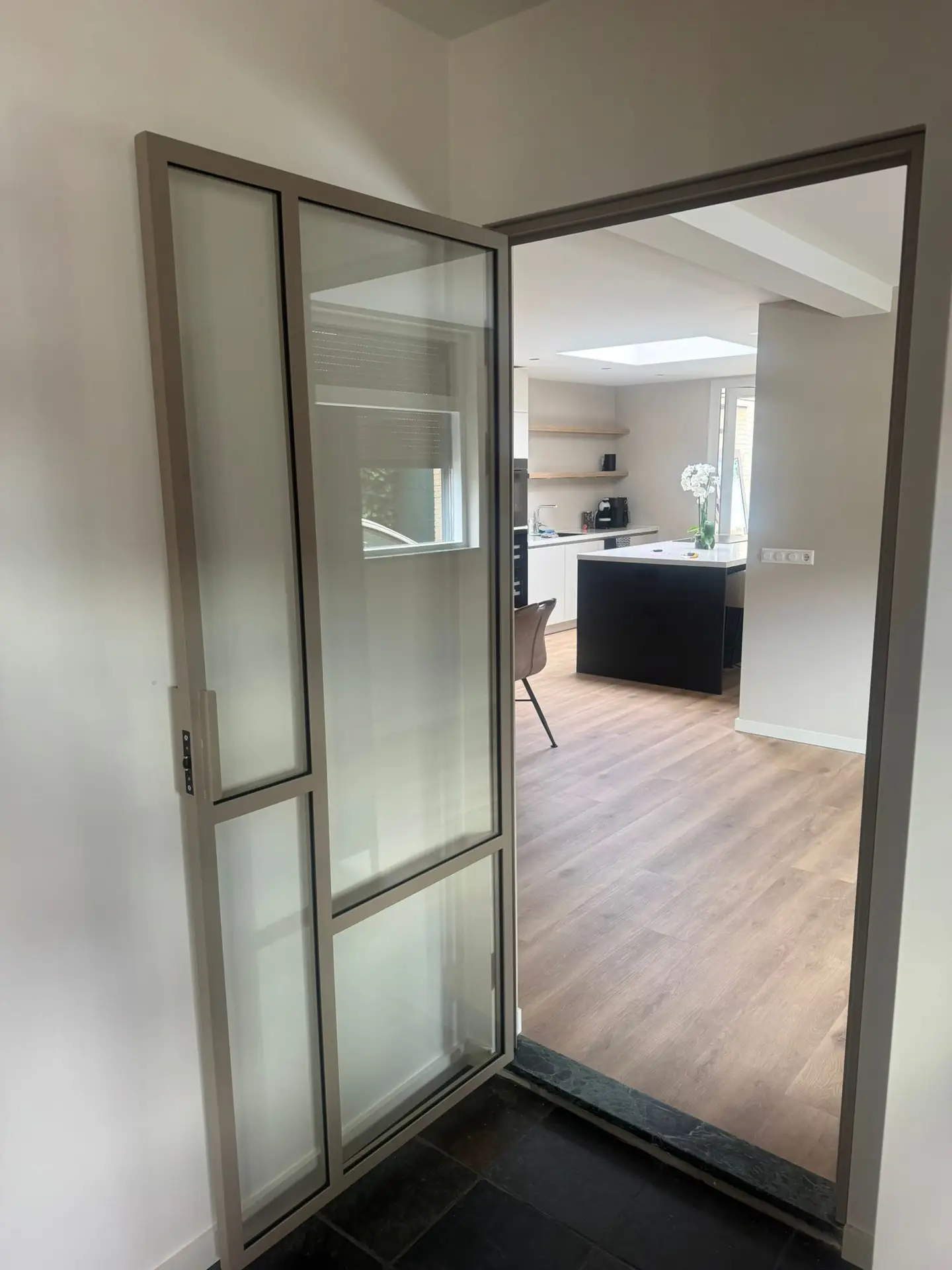 Stalen scharnierdeur ‘bronze’ in bestaand houten kozijn