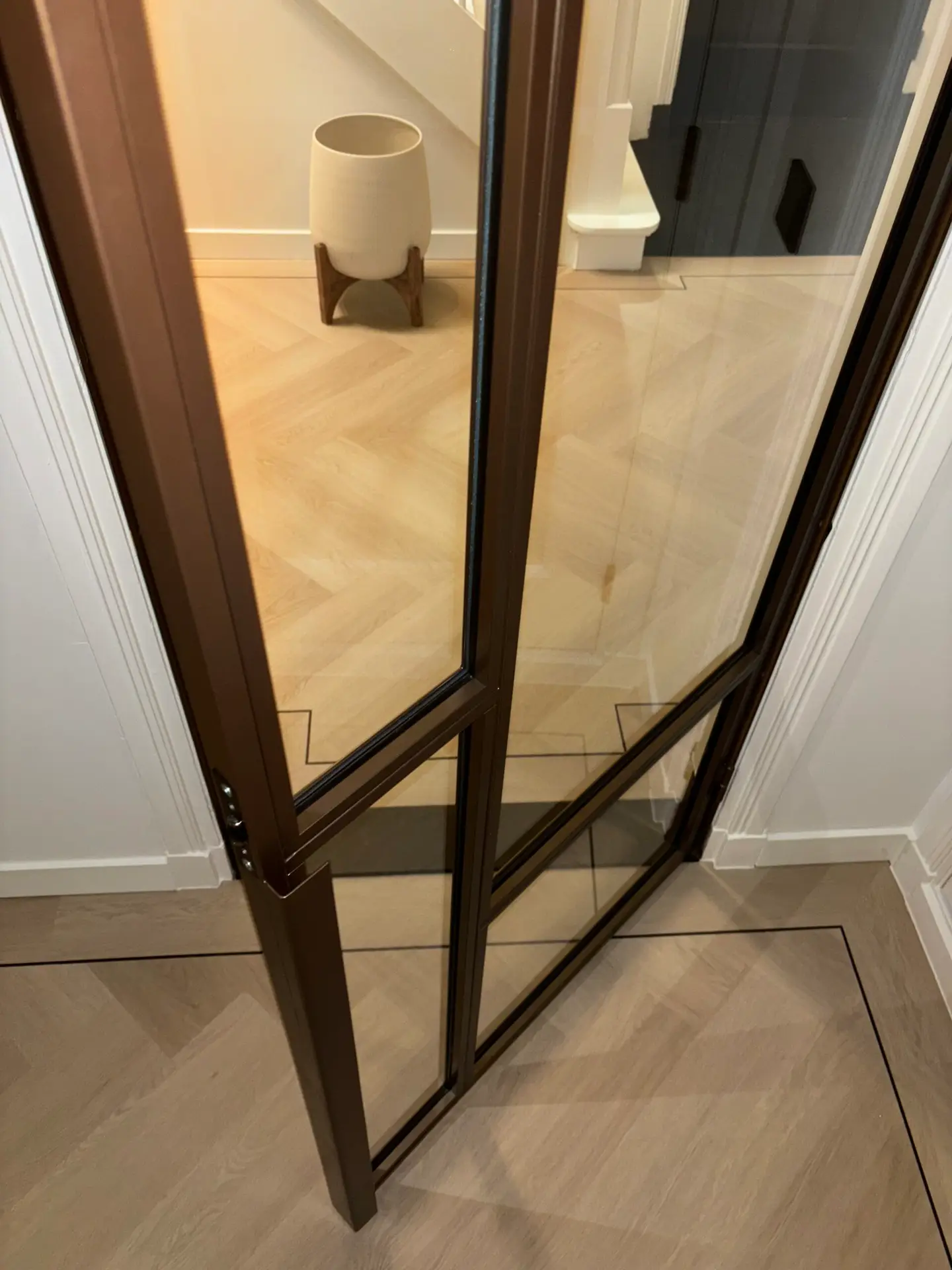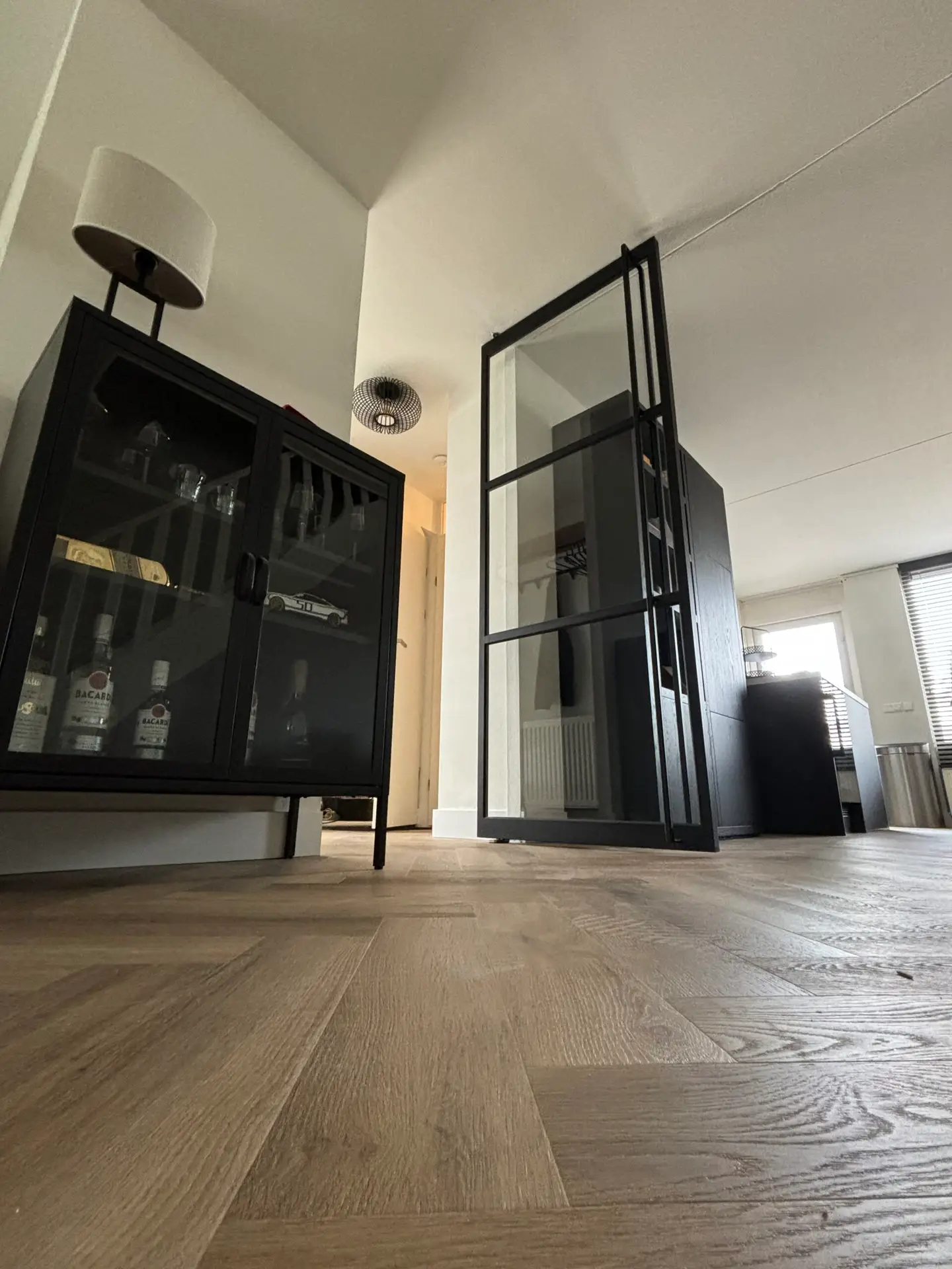 Pvc ‘visgraat’vloer en stalen taatsdeur