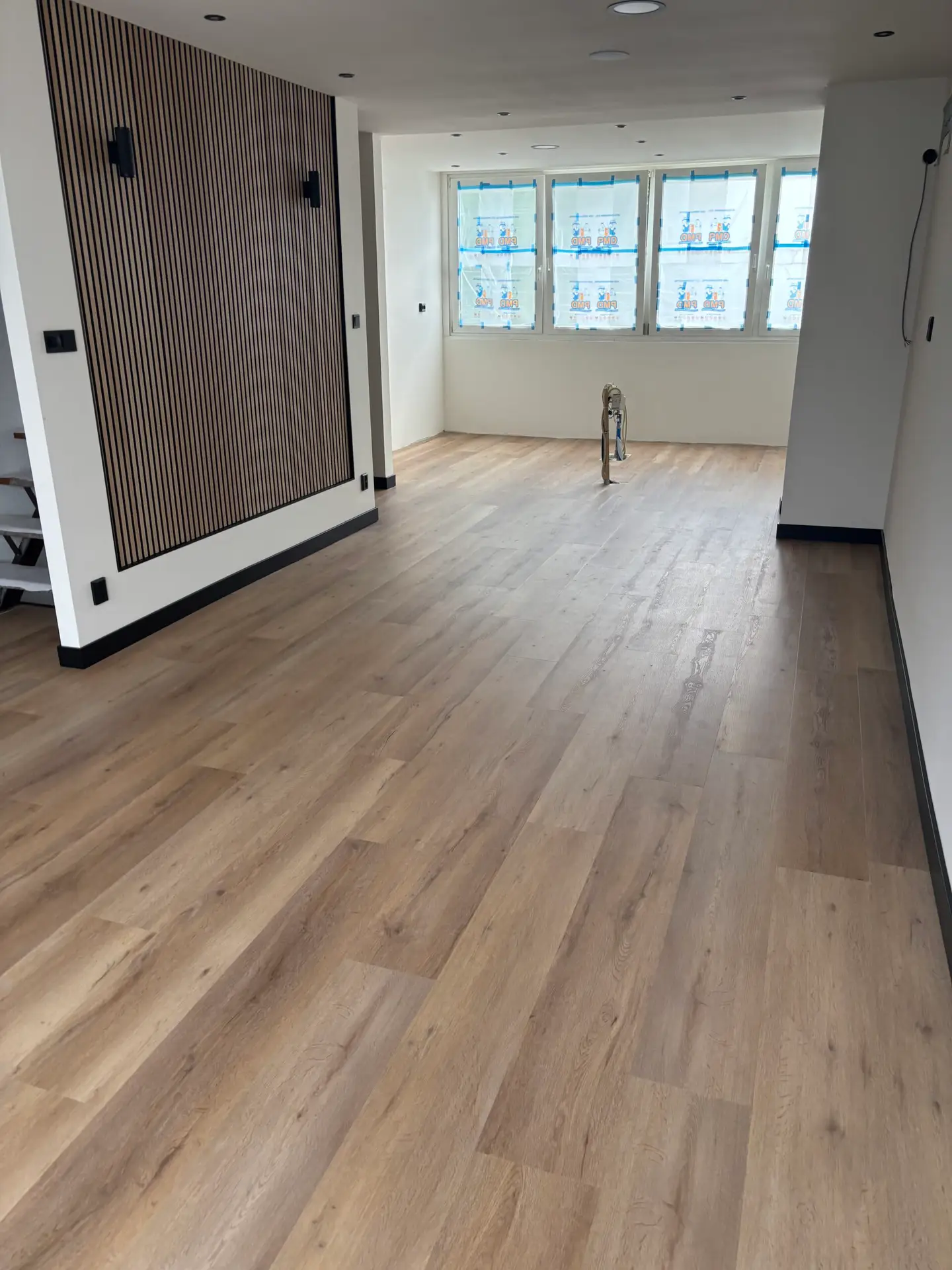 pvc vloer ‘planken’ doorgelegd in leefkuil
